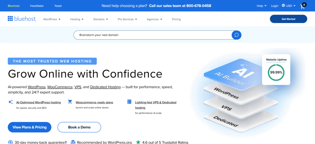 4. Bluehost – The Ultimate Beginner Experience ($2.95/mo)